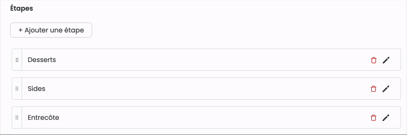 Vous pouvez modifier l'ordre d'affichage des étapes sur la caisse en les glissants dans l'ordre souhaité