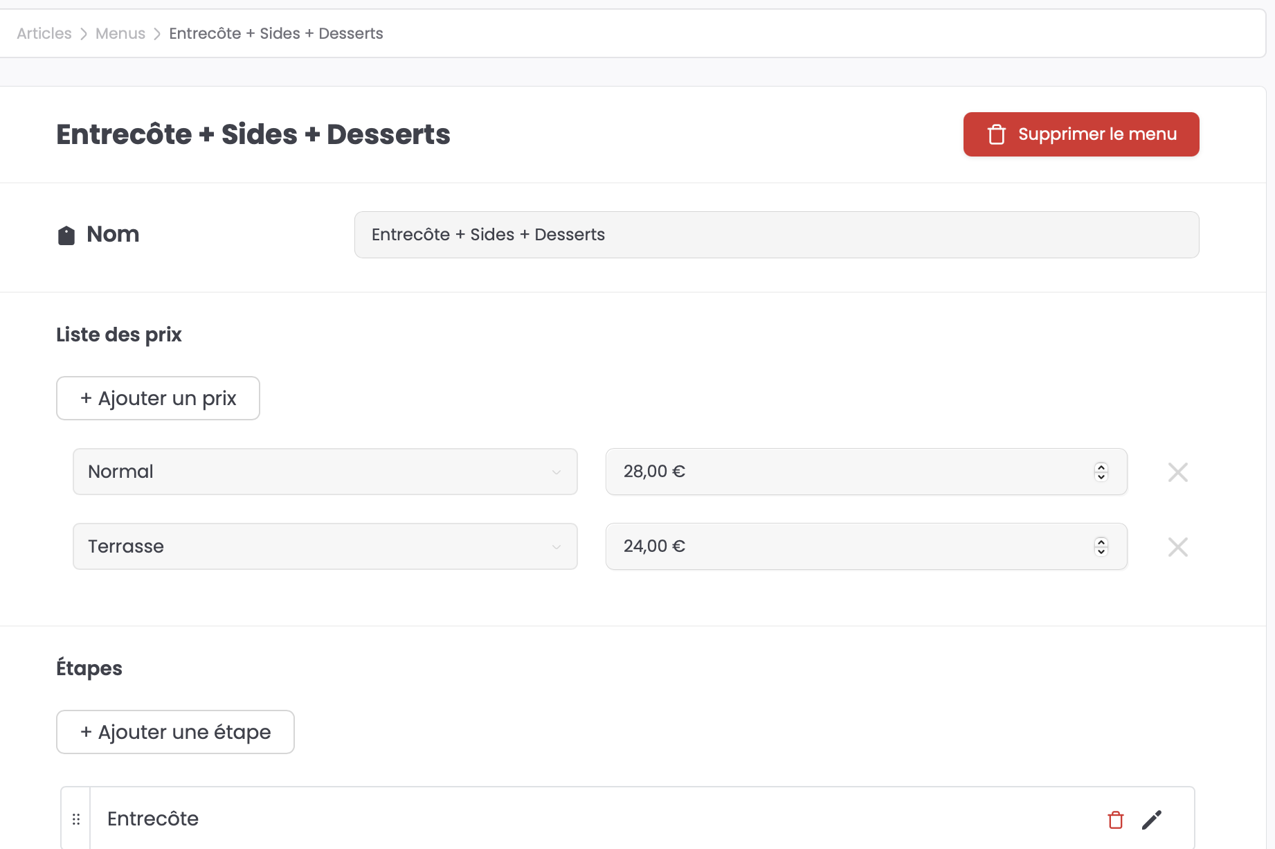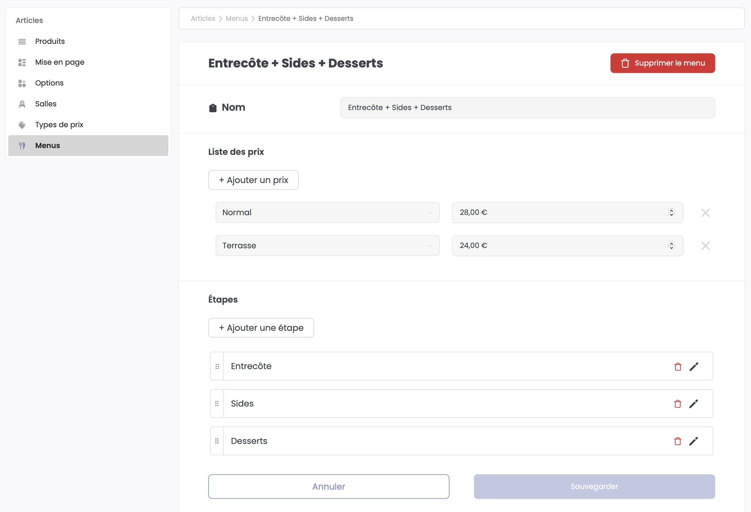Modifier/Supprimer un menu🔗