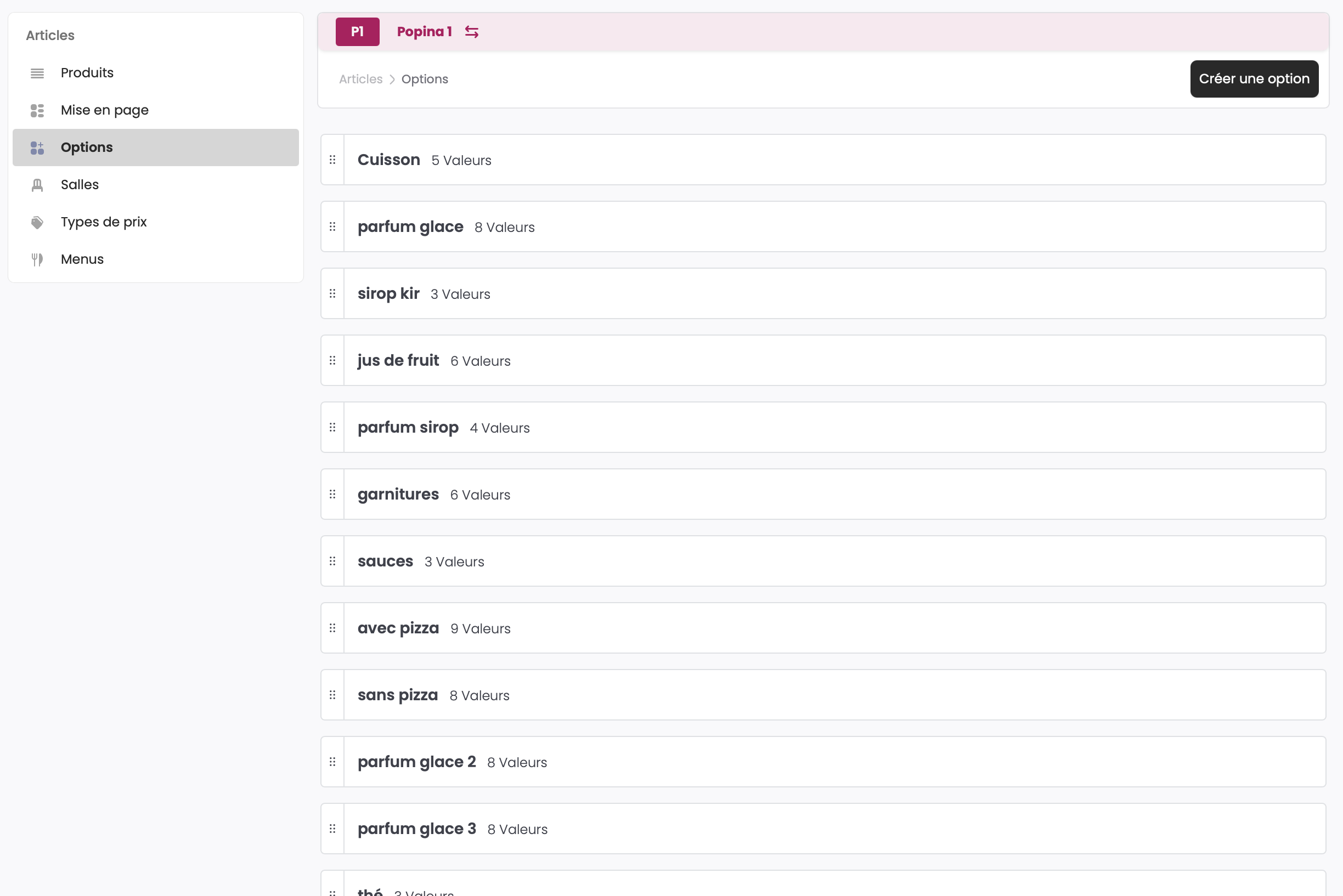 Modifier/Supprimer une option🔗