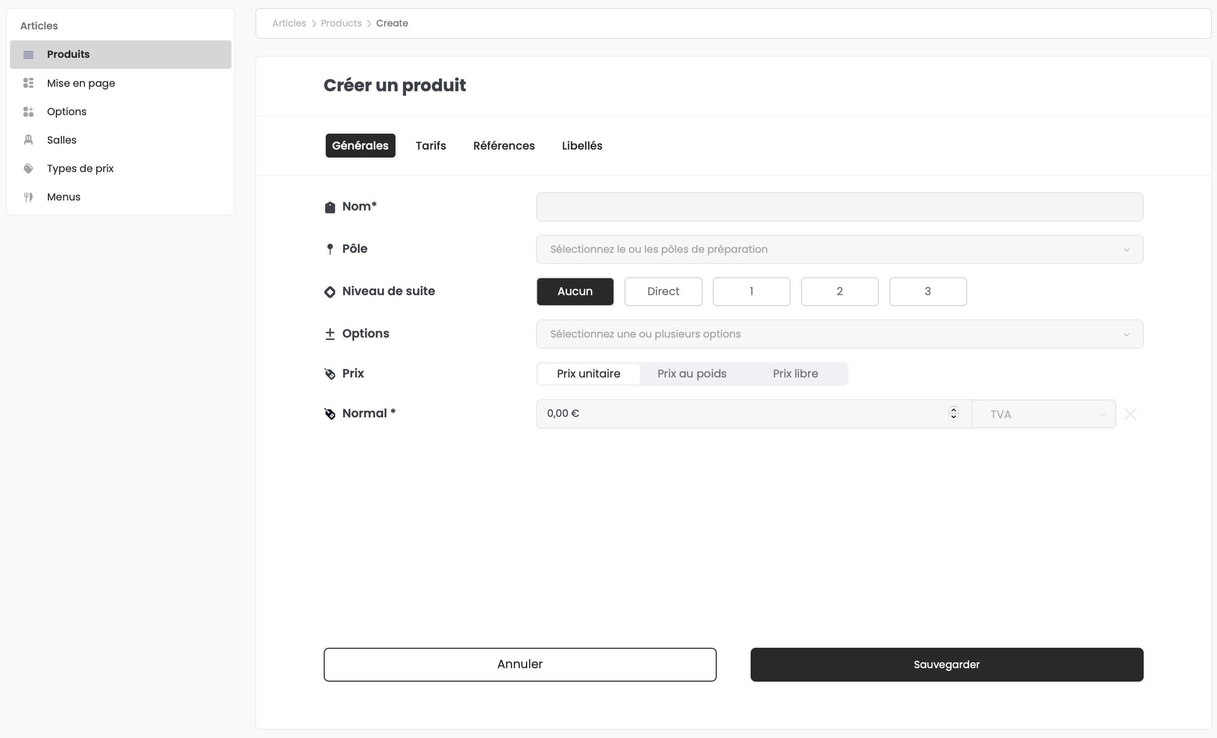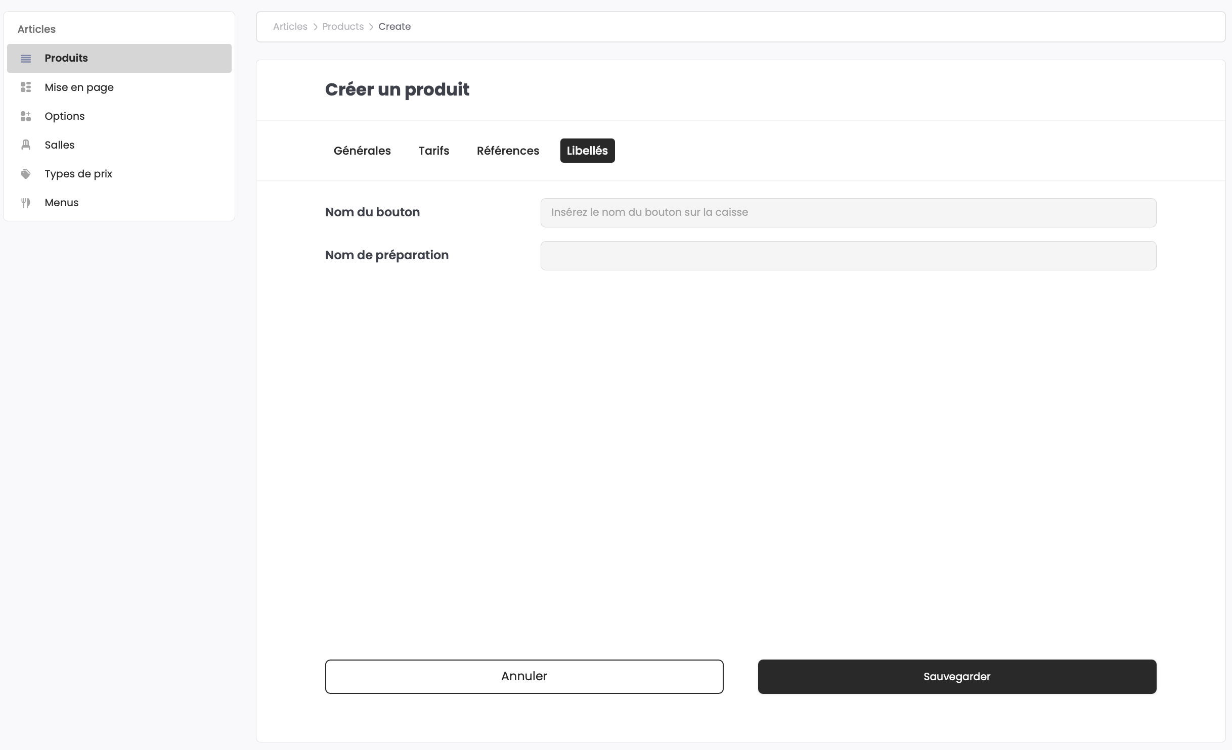 Pensez à sauvegarder vos modifications avant d’accéder à l’édition ou la création d'un nouveau produit, faute de quoi ces changements seront perdus.