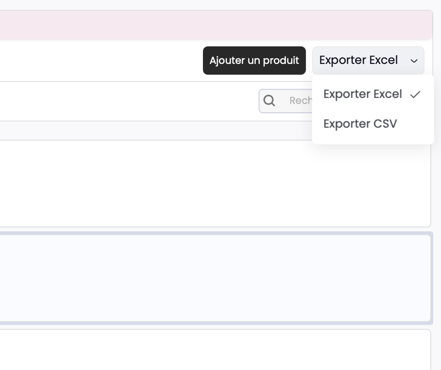 Vous pouvez générer un export de la liste de vos produit en format Excel ou CSV.