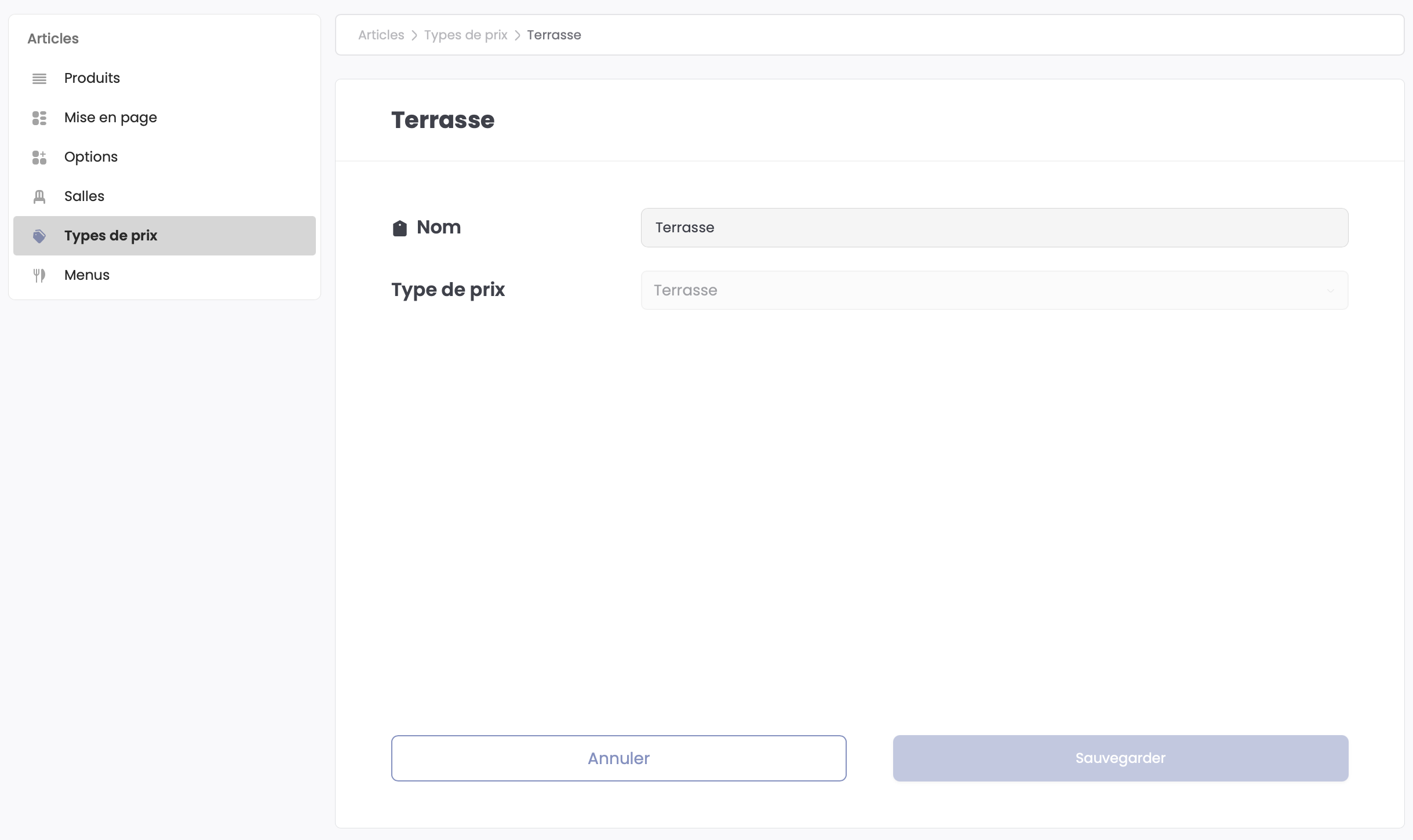 La section Type de prix du Back Office vous permet de consulter et modifier ces types de prix.