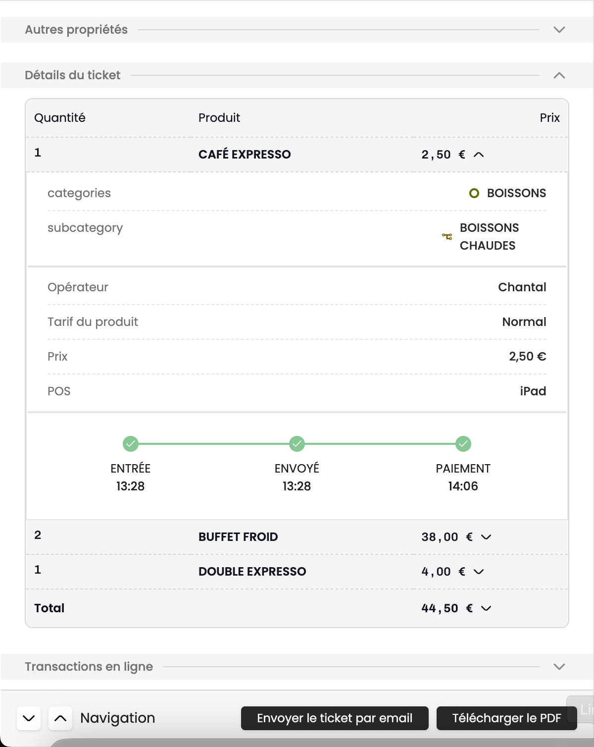 - Les utilisateurs intervenus (prise de commande, encaissement, modification)